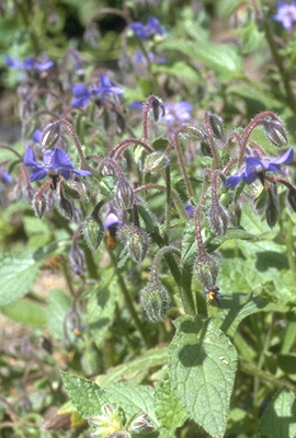Nel Trattato dei cibi et del bere edito in Bologna nel 1589, il medico Baldassare Pisanelli consigliava di “mangiarsi il dragoncello in compagnia dei fiori della borragine, con l`indivia o con la lattuga, o con altre herbe”. Dell`erbaggio in esame si utilizzano, infatti, per fini culinari anche i fiori. Essi possono essere adoperati per decorare diverse pietanze, ad esempio disposti su insalate oppure messi a galleggiare nelle zuppiere o nelle caraffe di punch. Inoltre, se canditi, si possono usare per decorare torte e altre confezioni di pasticceria (BONAR, 1990; SIMONETTI, 1990); certi aceti aromatici assumono un bel colore turchino per aggiunta dei fiori di questa pianta (BETTO, 1982). Della Borragine si utilizzano pure i boccioli, conservati sotto aceto e consumati allo stesso modo dei capperi. Infine, dalle foglie pestate in un mortaio si ottiene un succo altamente dissetante e rinfrescante (INDRIO, 1981; MABEY, 1992). |